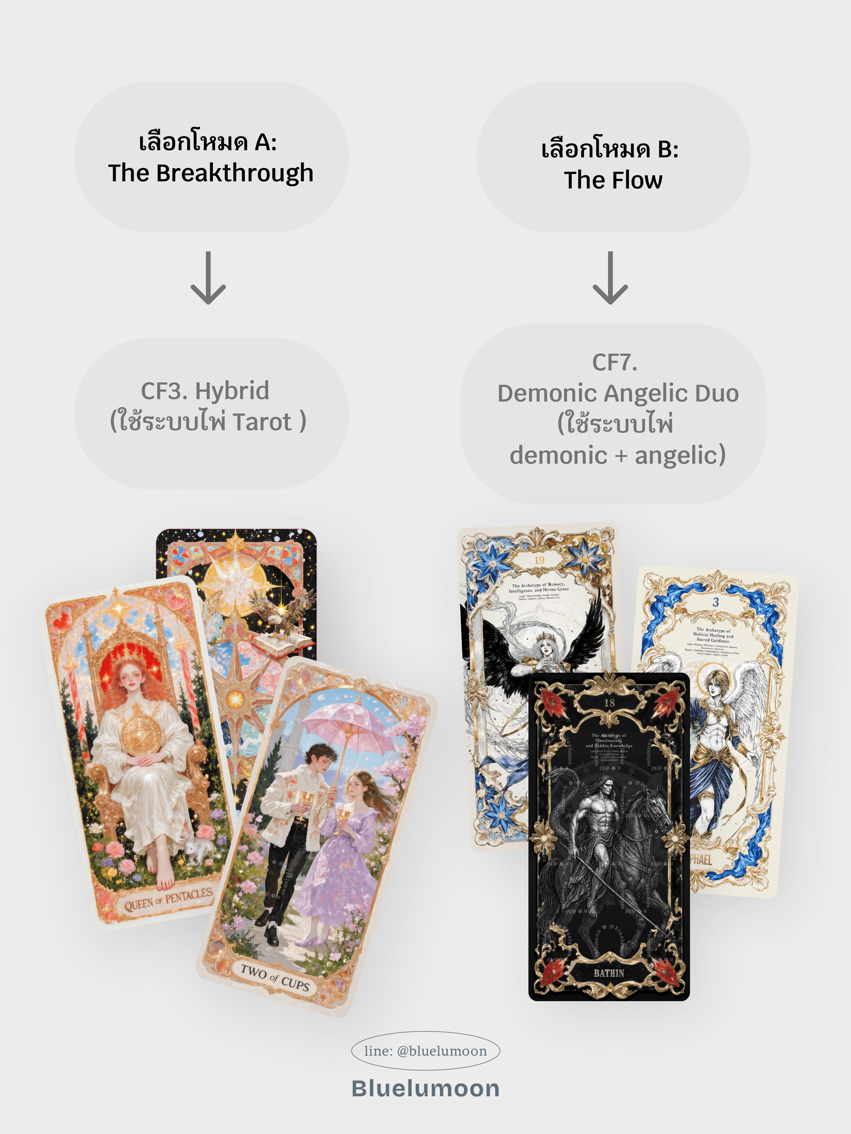🪞 STEP 1 – เลือกระบบไพ่ที่ใช่ (Tarot vs Angel/Demon)