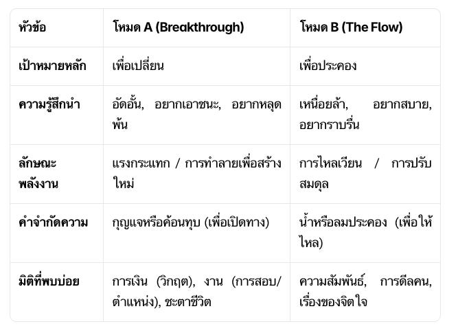 ความชัดเจนของขาวกับดำ (Binary Outcome) โหมด A มักจะไม่มีพื้นที่สีเทา ผลลัพธ์ของมันชัดเจนมาก เช่น สอบผ่าน หรือ สอบตก / ได้งาน หรือ ไม่ได้งาน / หนี้หมด หรือ เป็นหนี้ต่อ / เลิก หรือ ไม่เลิก มันคือแรงส่งสุดท้ายค่ะ