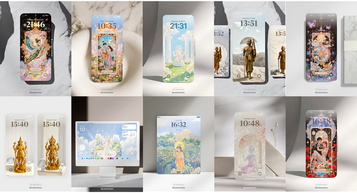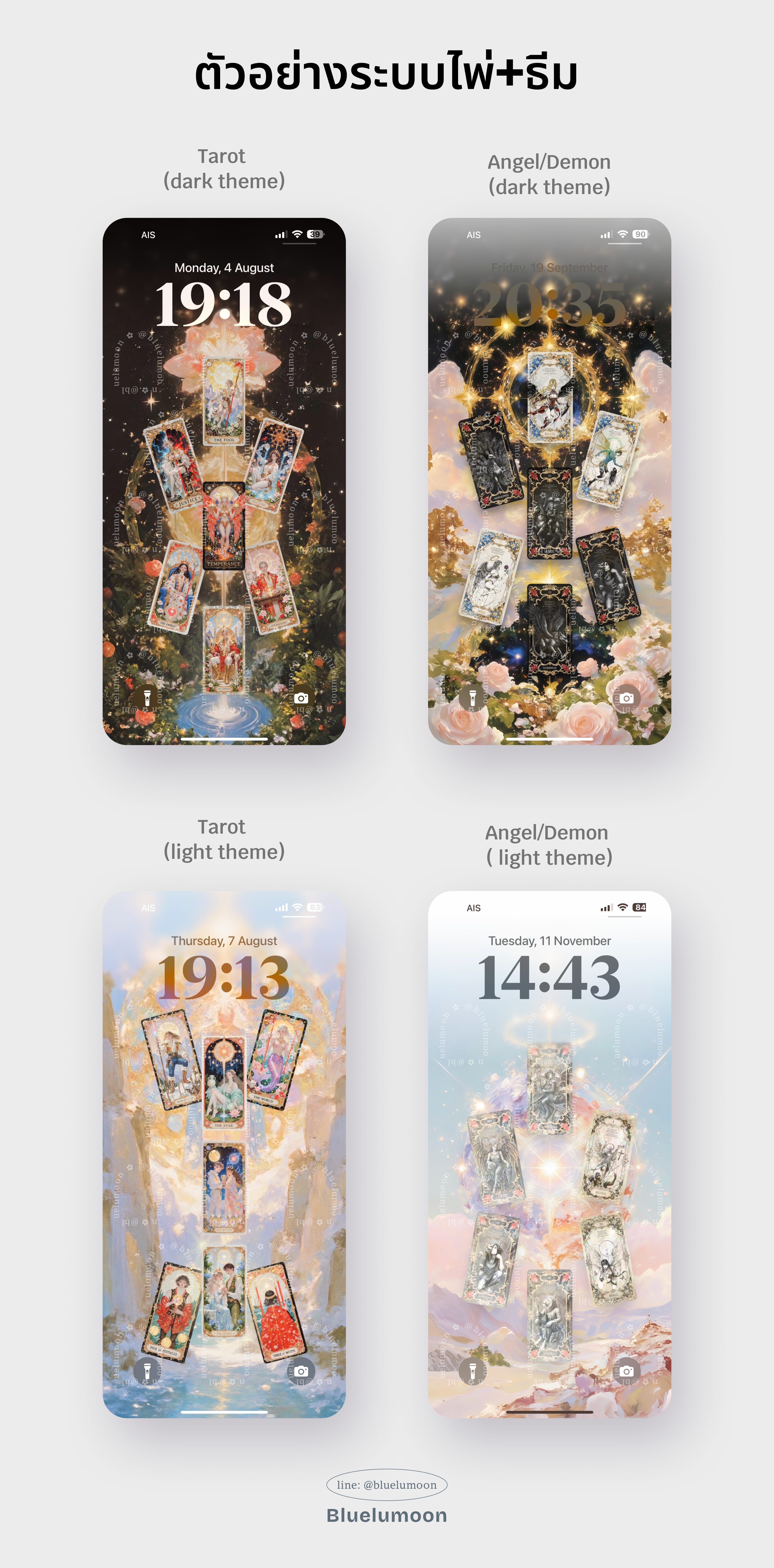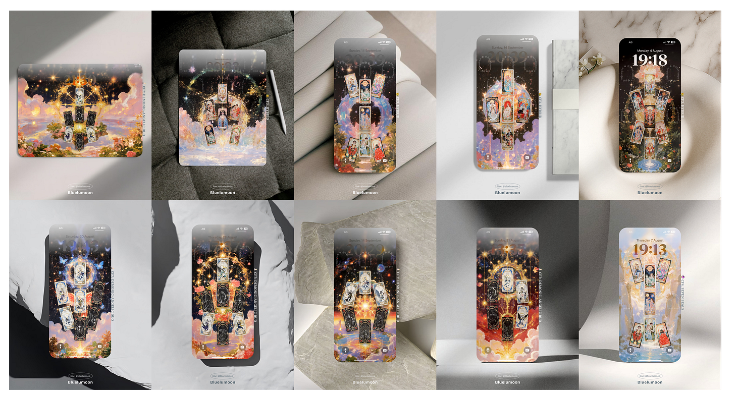 กลับมาที่ฟีดแบค จริงๆ สิ่งที่เกิดขึ้นที่บลูแชร์ได้คือ ลูกค้ากลับมาสั่งขนาดอื่น หรือธีมสีอื่นเพิ่ม (เช่น เคยเอา iPad แล้วกลับมาสั่งมือถือหรือคอมเพิ่ม เคยสั่งทำธีมมืดไปแล้ว อยากได้ธีมสว่าง) ,ขอปรับไพ่ ในวอลเดิม เพราะเขาผ่านเรื่องบางเรื่องไปแล้ว แต่ไม่อยากเปลี่ยนวอล, หรือบางคนก็เล่าแบบสั้นๆ ว่าปัญหาที่เขาติดอยู่มันคลี่ออกแล้ว ซึ่งบลูจะไม่เคลมว่าเป็นเพราะภาพของบลูเสมอไปค่ะ มันอาจเป็น timing หรือจังหวะพลังงานของแต่ละคนด้วย แต่จุดร่วมที่เห็นชัดคือ…