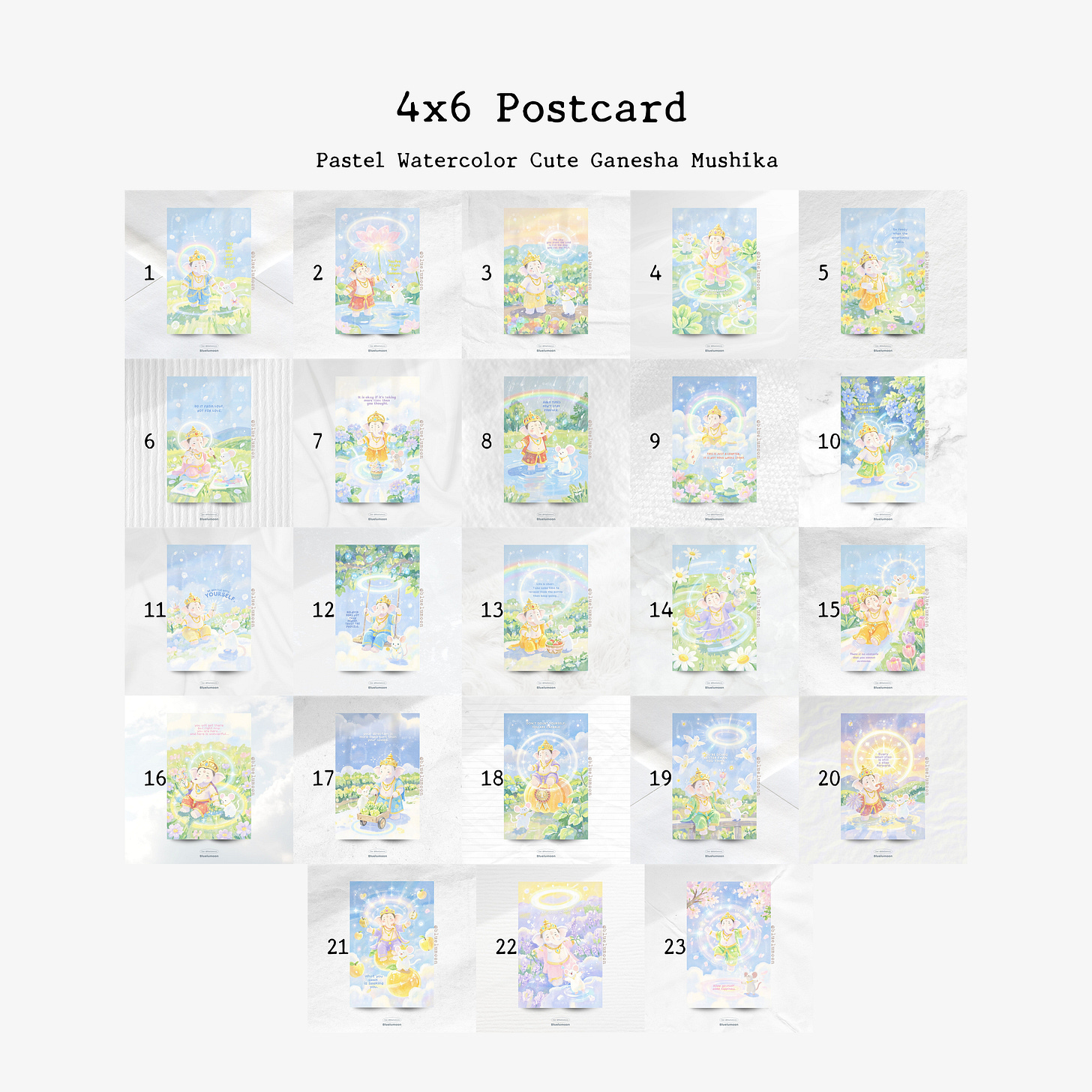 โปสการ์ดขนาด 4x6 นิ้ว (300 gsm) พิมพ์ลงบนกระดาษ Art Paper แบบด้าน (เคลือบเฉพาะด้านหน้า) ด้านหลังมีพื้นที่สำหรับเขียนข้อความ